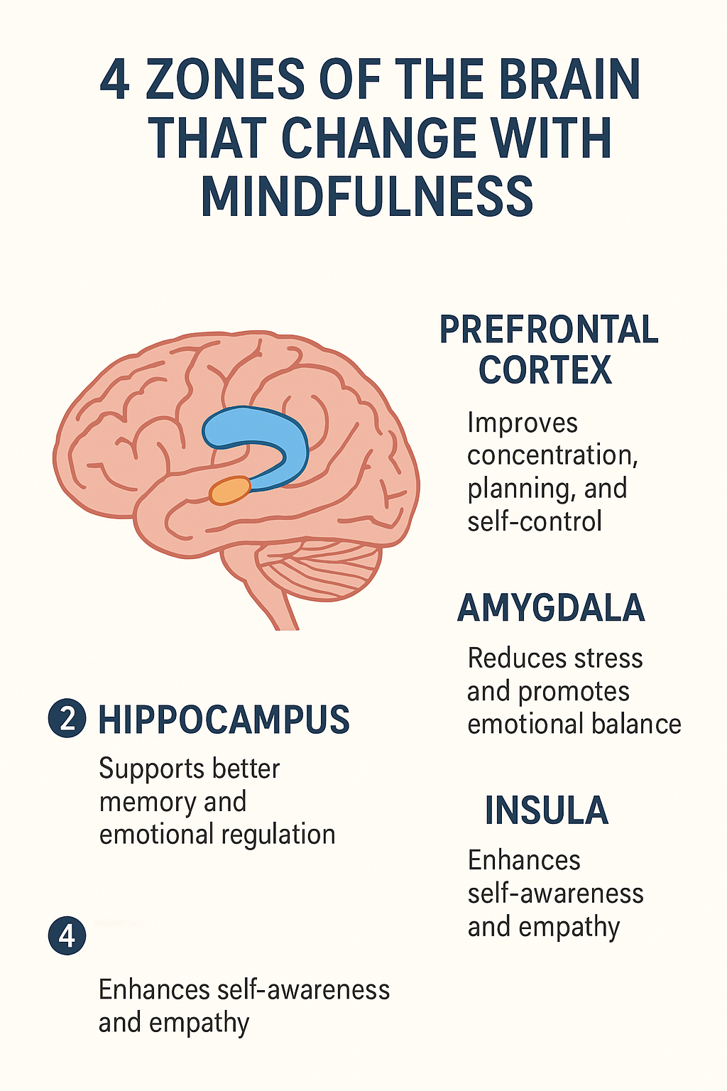 The neuroscience of mindfulness shows that this practice not only calms the mind — it transforms the brain. Each conscious breath strengthens the areas linked to calmness, clarity, and empathy.